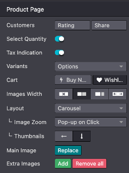 Upload multiple pictures of a product in bulk. Display product pictures in a grid or caroussel.